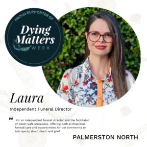 I’m an independent funeral director and the facilitator of Death Café Manawatū. Offering both professional funeral care and opportunities for our community to talk openly about death and grief.