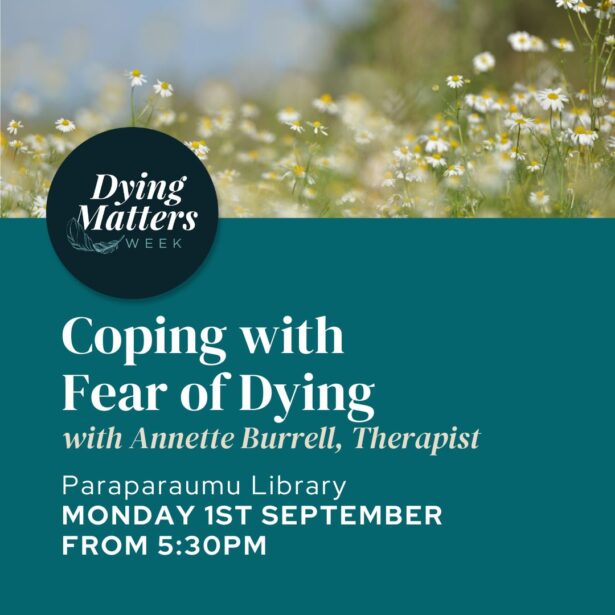Annette Burrell, therapist from The Inner Path brought Dying Matters Week 2025 to the Kapiti Coast area with events from 1st to 7th September at the Paraparaumu Library, Ocean Road Community Centre and other local businesses.